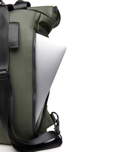 A chic, contemporary bag in supple PU. This versatile design can be carried as either a rucksack or a tote bag - commute with the bag comfortably on your back and then simply carry it over your arm if you're going out for lunch. The clever padded computer pocket is the perfect place to store your devices. You can also attach this bag to your bike frame. The perfect combination of practicality and style! Suitable for computers with an overall size of 17 inches. Please note that the dimensions of the display are not the same as the dimensions of the entire computer.