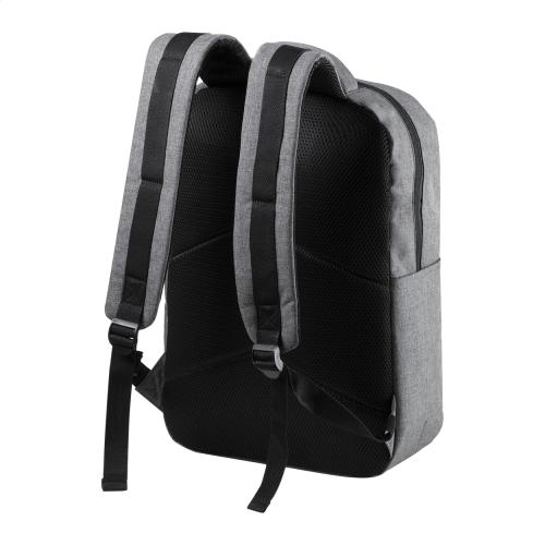 Backpack with zipped compartments, padded laptop (15") and tablet (10") compartment, padded back and shoulder straps. With distinctive RPET label and built-in USB connection for power banks. 600D RPET polyester.
