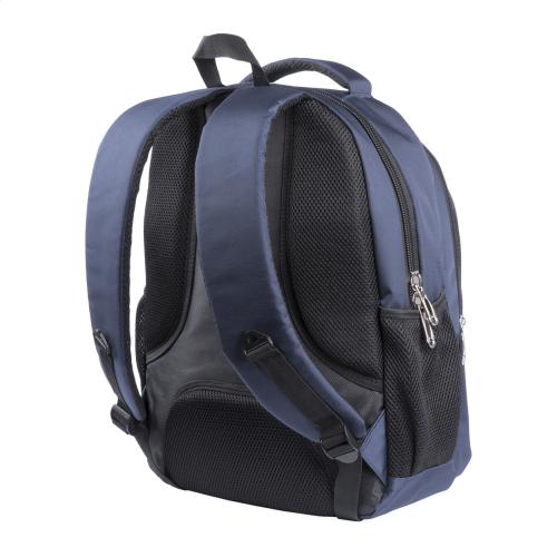 600D nylon backpack with multiple zipped compartments, padded laptop pocket (15"), back and shoulder straps.