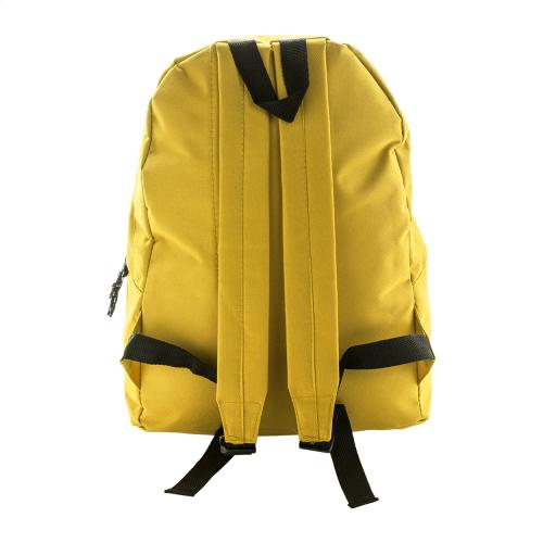 Backpack with zipped front pocket, padded back and shoulder straps. 600D polyester.