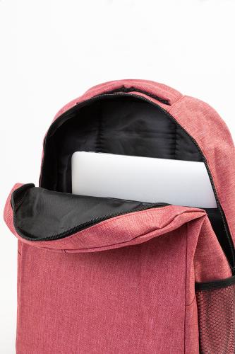 Backpack with zipped compartments, padded back, shoulder straps and laptop compartment (15"). 600D polyester.