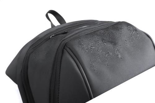 Waterproof, nylon backpack with multiple zipped compartments, anti-theft pocket, padded laptop compartment (15"), back and shoulder straps. With built-in USB connection for power banks.
