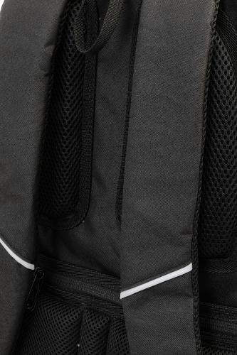 RPET backpack with zipped compartments, 2 zipped front pockets, zipped side pockets and padded laptop (15") compartment. With padded back and shoulder straps, anti-theft pocket and trolley strap. With 300D RPET polyester, with distinctive RPET label.