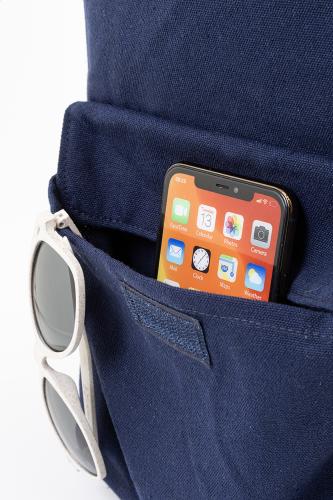 Recycled canvas backpack with zipped main compartment, padded laptop (13") compartment and velcro closure front pocket. 70% recycled cotton and 30% RPET polyester. With distinctive recycled cotton label.