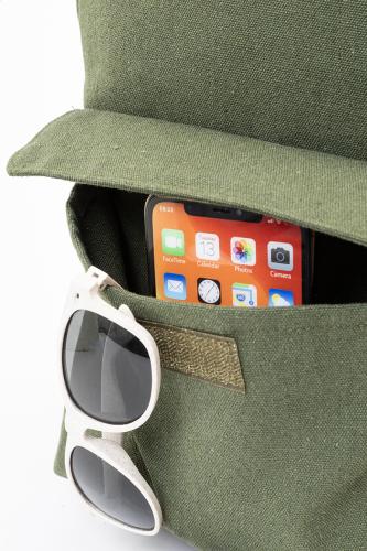 Recycled canvas backpack with zipped main compartment, padded laptop (13") compartment and velcro closure front pocket. 70% recycled cotton and 30% RPET polyester. With distinctive recycled cotton label.