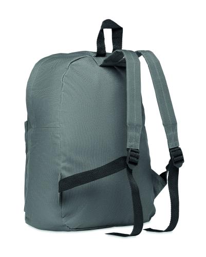 Backpack in 600D polyester with outside pocket with zipper.