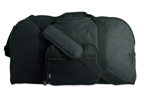 Sport or travelling bag in 600D polyester with front pocket and adjustable and detachable shoulder strap.