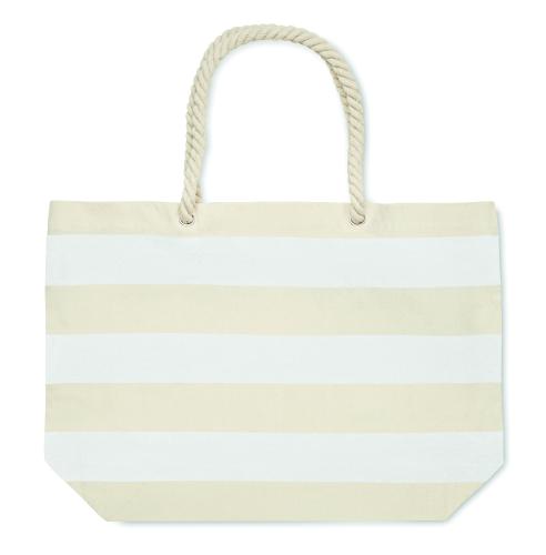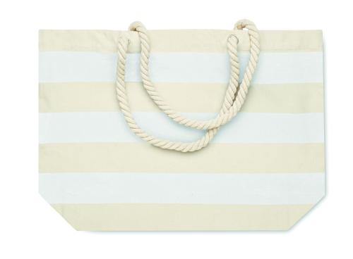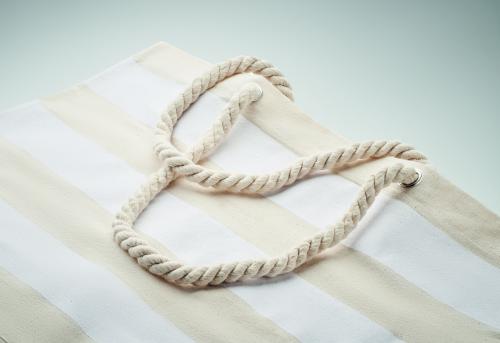 Striped beach or shopping bag in cotton with cord handle. 220 gr/m².