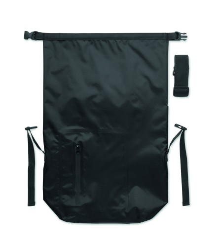 RPET 210D polyester waterproof rolltop backpack. Capacity: 25L.