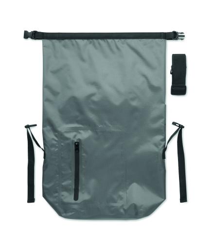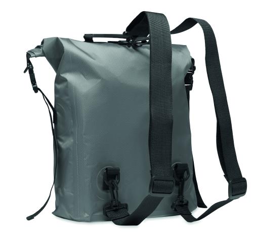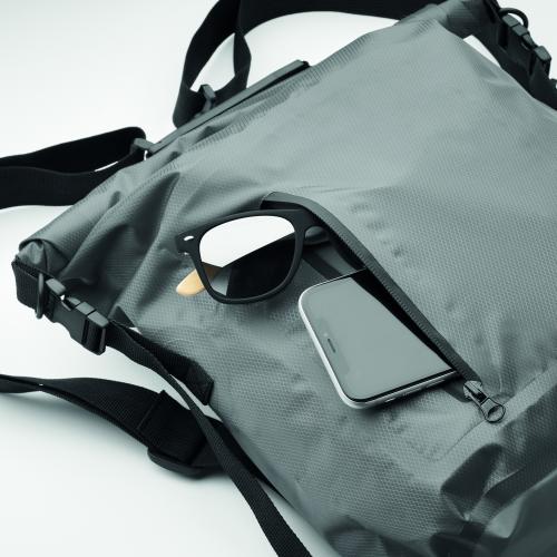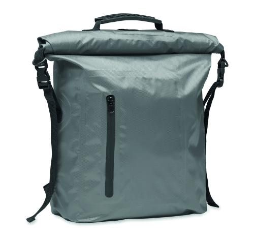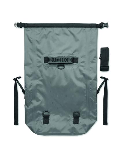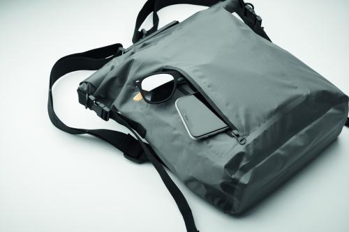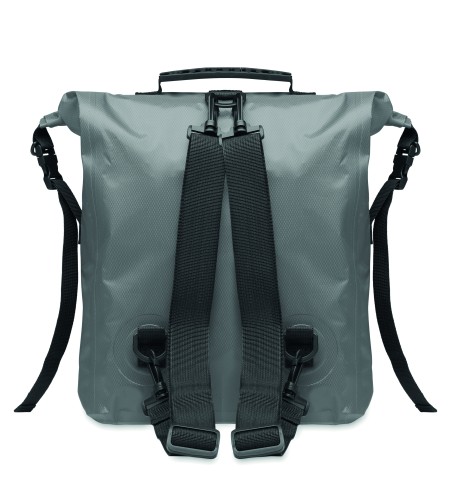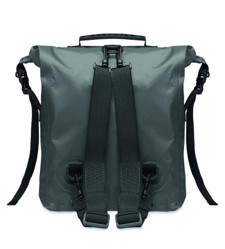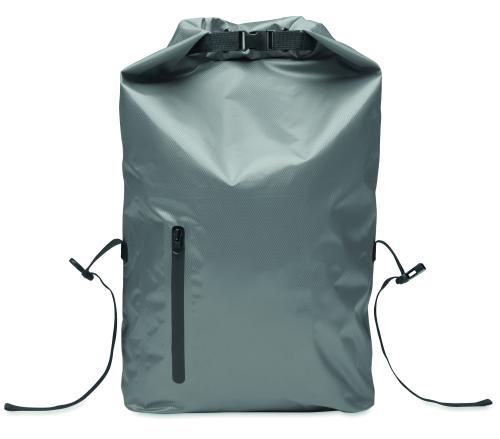 RPET 210D polyester waterproof rolltop backpack. Capacity: 25L.