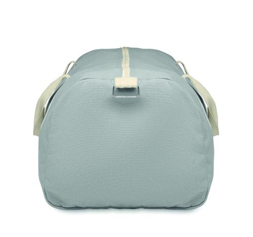 Duffle bag in recycled fabrics (60% recycled cotton, 40% recycled polyester) in 320 gr/m² with handle natural cotton webbing and an adjustable and detachable shoulder strap.