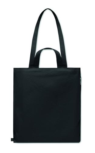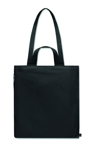 Recycled polycotton shopping or beach bag (70% recycled cotton, 30% recycled polyester) with short and long handles. It has a side zippered pocket. 380 gr/m².