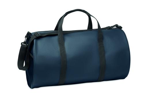 Duffle bag in 600D RPET polyester with PU coating. Front zippered pocket. Inside 210D RPET polyester lining. 1 side zippered compartment / 1 side mesh compartment. Zippered pocket inside.
