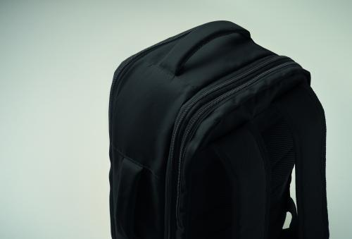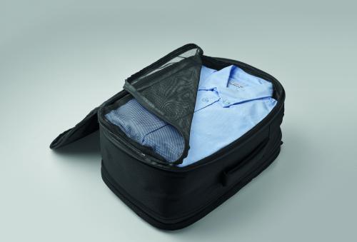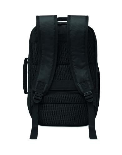"Cabin-size carry-on extendable backpack made of 600D RPET polyester with 180o opening. Features a main compartment with two open sections, mesh division, padded 15"" laptop pocket, and luggage strap."
