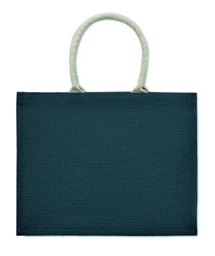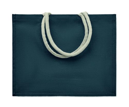Jute laminated shopping or beach bag with cotton handle. Short handles.