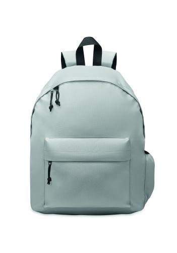 Backpack in 600D RPET polyester with outside pocket with zipper. Padded back and has a side bottle compartment.