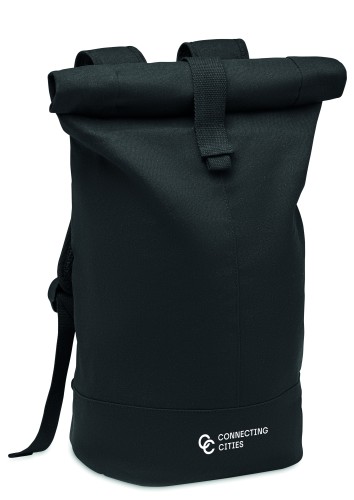 Rolltop backpack in high quality 340 gr/m² washed canvas with padded back reinforcement. The lining is in RPET 210D.