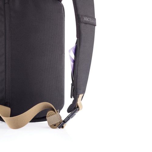 Safe, comfortable, and smart, the Bobby Sling was designed for city travelers. Feel protected with the famous Bobby anti-theft features like hidden zippers, no front access, RFID protected pocket, and cut-resistant material. There is also a 3-point safe buckle, ensuring your daily essentials are always along your body. Additional features like water-resistant material and an integrated USB charging port make this crossbody backpack the most convenient option for your everyday journey. Made from R-pet fabric with the AWARE™ tracer. With AWARE™, the use of genuine recycled fabric is guaranteed. 37% Recycled content. Registered design®