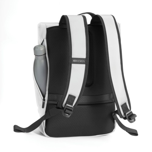 Experience versatile, all weather design and enhanced security with Urban backpack. Its unique L shaped wide opening main compartment,complete with an expandable section and ample space for a 16 inch laptop, offers effortless access to your essentials. The anti theft design, coupledwith a self locking metal zipper puller, ensures that your belongings remain safe. The addition of a rear pocket and a dedicated water bottle pocketbrings convenience to your daily adventures, making it the ideal companion for urban explorer. This backpack is not only water repellent, it's durable and stylish. Crafted with Aware ™traceable recycled polyester and finished with a soft touch PU coating, perfect for any occasion. 17% recycledcontent. Registered design®