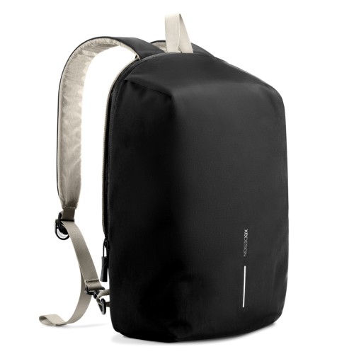 Switch Backpack redefines versatility with the upgraded Shape-Shift Zipper System 2.0, allowing the bag to fully switch between two distinct styles in one. One side Minimalist, one-piece construction creates a clean, structured silhouette, while the other embraces a casual look, retro-inspired with multiple zipper pockets for easy access. It balances formal and everyday wear effortlessly. Crafted with lightweight recycled nylon, grid pattern nylon, while the lining is crafted with AWARE™, the use of genuine recycled fabric is guaranteed. 21% recycled content. Registered design®.