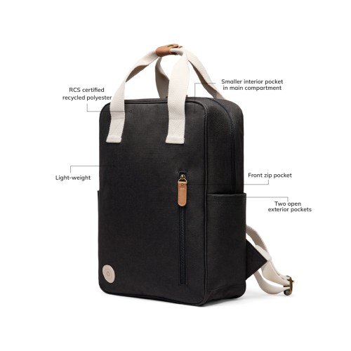 Keep it light with this classic yet subtly sporty backpack, crafted from RCS certified recycled polyester and accented with contrasting details. The backpack offers a convenient front zip pocket and two open side pockets for easy access. Inside the spacious main compartment is a smaller pocket, designed for easy organisation. The antique brass metal details add a touch of sophistication. Certified by RCS (Recycled Claim Standard), RCS certification guarantees that the entire supply chain of recycled materials is certified. The total recycled content is based on the overall product weight. This product contains 10% RCS certified recycled polyester.
