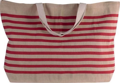 - Large hold-all bag in jute canvas and cotton (juco) with gusset and 55 cm handles in contrasting colour