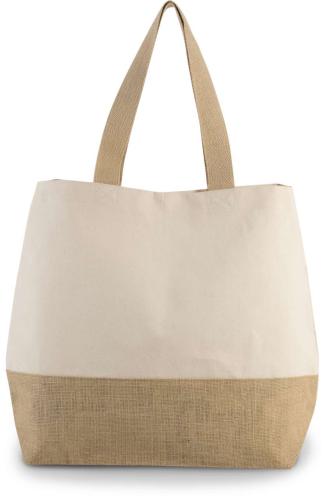 - Large hold-all cotton bag with constrast laminated natural jute base