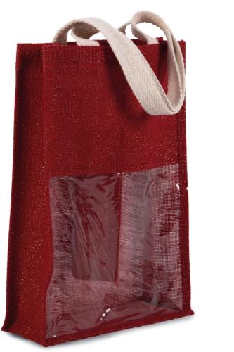 - Jute canvas bottle bag, with 2 handles and transparent window on front