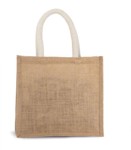 - Jute canvas tote with cotton handles