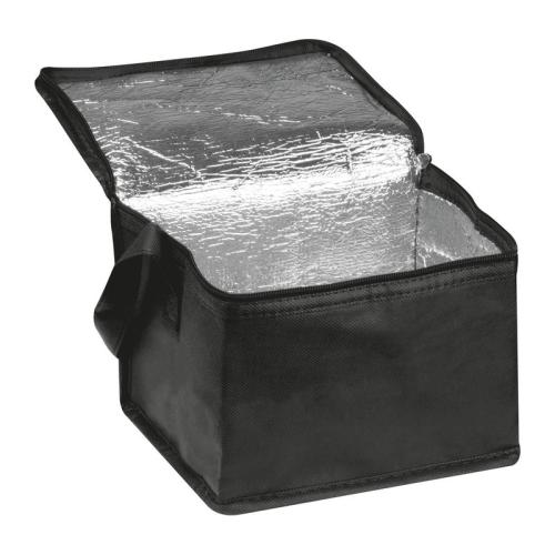 Non-woven cooling bag with carrying strap, suitable for 6 standing beverage cans (0.33 litres).