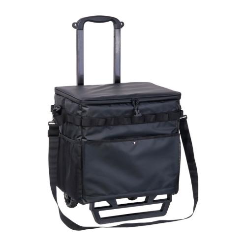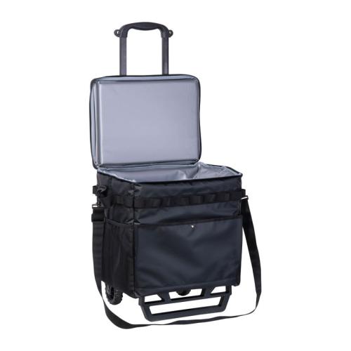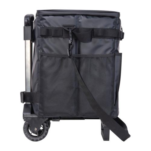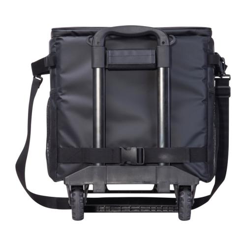 Large cooler trolley with a 35-liter capacity and a waterproof zipper. The cooler bag is detachable, and the frame can be folded to save space.