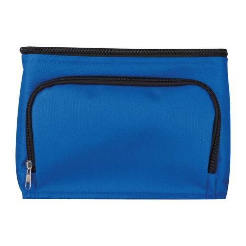 210D polyester cooler bag with a zipper front compartment and nylon carrying straps. Suitable for 6 cans with 0.5l each, small bottles or anything that needs to stay fresh.