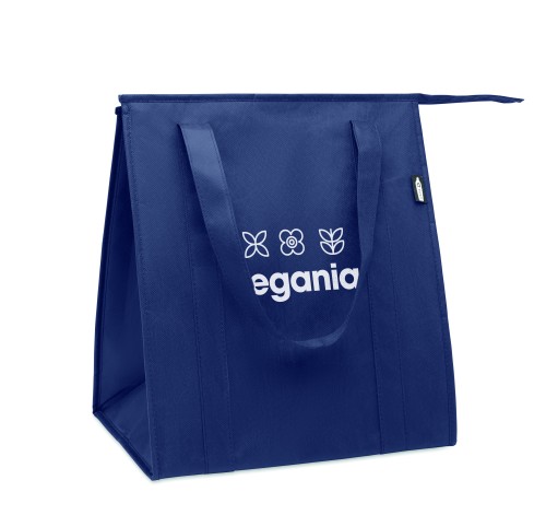 Cooler bag in RPET non-woven 80gr/m². Isolation material: aluminium foil. Capacity 25L. Main compartment with zipper on top.
