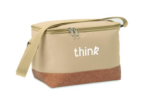 RPET 600D cooler bag with cork base detail. PEVA with 2mm PE foam. Capacity 5L.