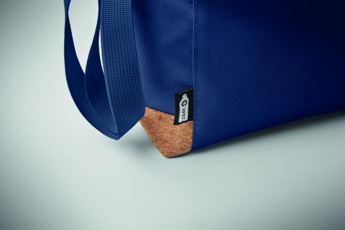 RPET 600D cooler bag with cork base detail. PEVA with 2mm PE foam. Capacity 5L.