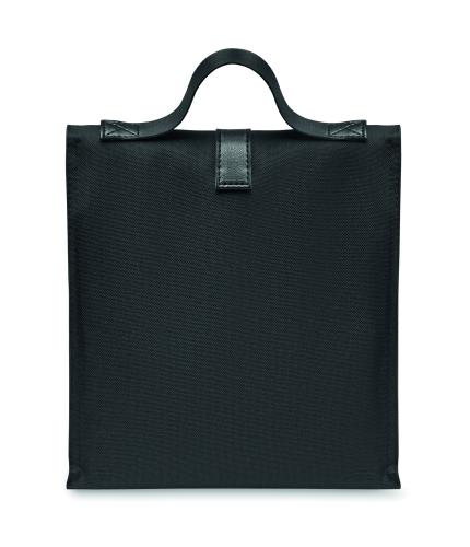 600D RPET polyester insulated roll top lunch cooler bag with PU handle and closure. Insulation: 3mm PE foam with PEVA.