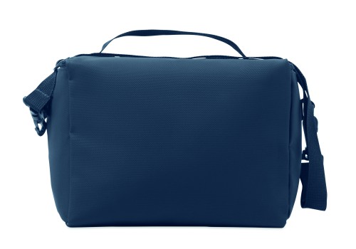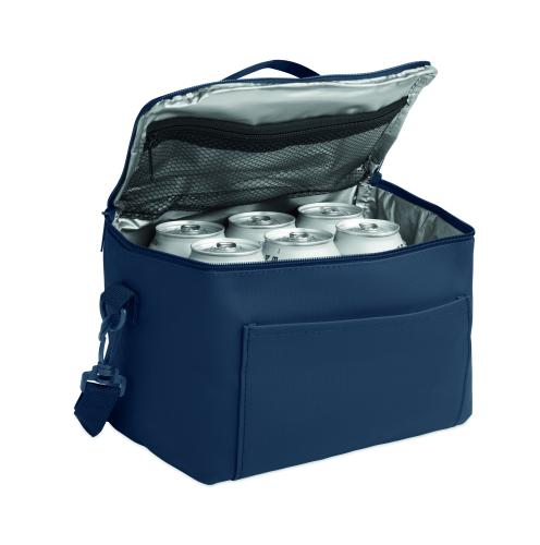 Cooler bag in PU with 100g RPET polyester lining. Including 1 front pocket, handle and shoulder strap. Isolation PE foam with PEVA lining. Capacity 5.5l.