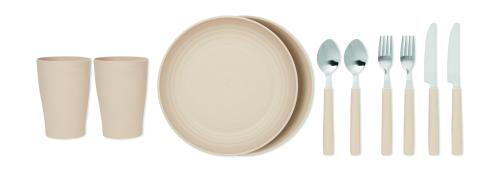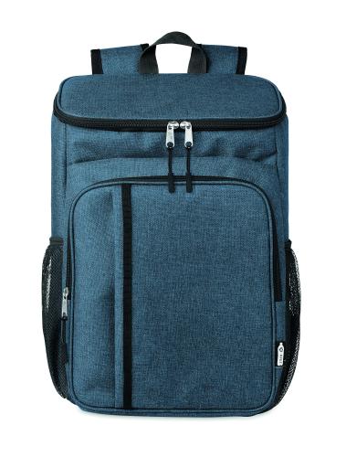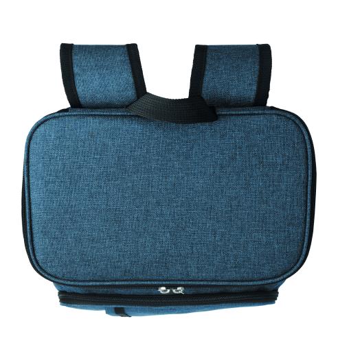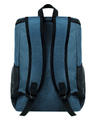 Cooler bag or outdoor picnic backpack in 2 tone 600D RPET including 2 person table accessories. It has stainless steel knife, and PP fork, spoon and cup.