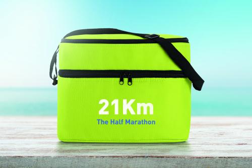 600D Cooler bag with 2 compartments and aluminium foil lining. Adjustable shoulder strap.
