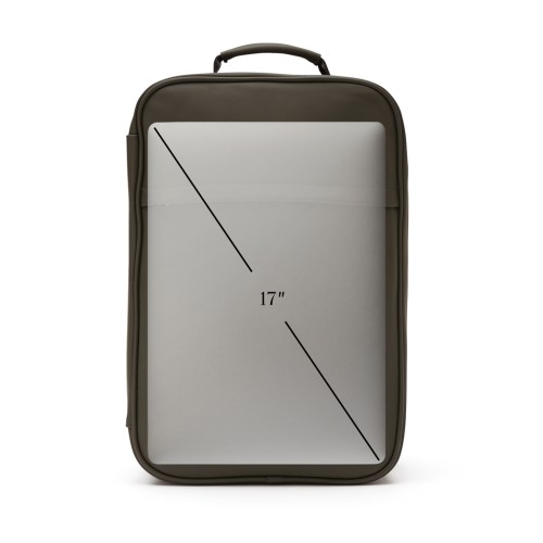 This backpack comes in a minimalistic and modern design and has handy organizational capacities, ensuring that you can fully utilize all of its space. There is a padded compartment for the computer and a hidden pocket on the back for safe storage of the valuables. The backpack's handy size, adjustable straps and well-planned compartments make it easy for you to carry everything that you need on the go. A perfect companion for short trips or nightovers. Made of PU which gives the bag its water-repellent properties.Suitable for computers with an overall size of 17 inches. Please note that the dimensions of the display are not the same as the dimensions of the entire computer.