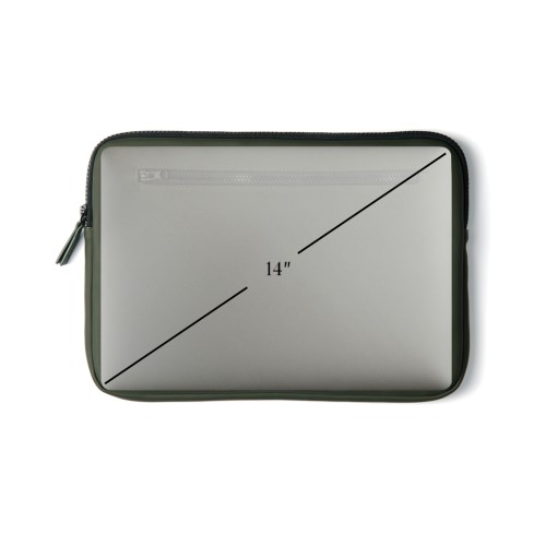 A stylish laptop case to protect your computer from bumps and moisture. Made in a light, water-repellent nubuck PU fabric with an elegant matt exterior and a light synthetic cloth interior. Suitable for computers with an overall size of 14 inches. Please note that the dimensions of the display are not the same as the dimensions of the entire computer.