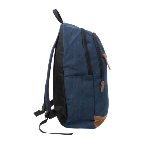 600D polyester backpack with suede-look contrasting bottom and closing strip, with hanging loop, shoulder straps, a front compartment and a filling capacity of 29 liters.