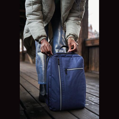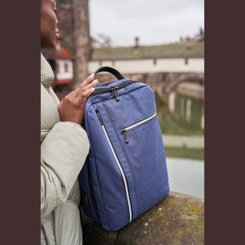 High-quality, waterreppelant nylon backpack with padded shoulder straps, handles, USB port, two lockable front pockets. a laptop compartment for 15.6 inch laptops and a filling capacity of 13 liters.