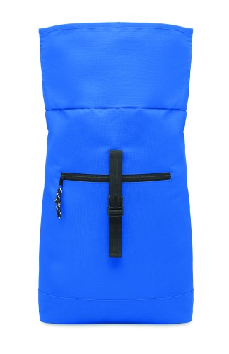 15 inch rolltop laptop backpack in 600D polyester with padded back and base reinforcement. Zippered front pocket. 210D lining.