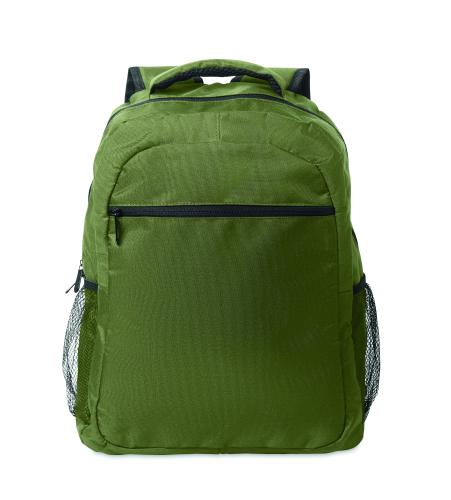 Laptop backpack 15inch in 600D RPET polyester with padded laptop compartment inside, mesh pockets on both sides and zippered front pocket.