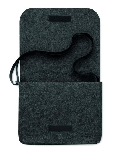 RPET felt messenger or laptop bag with hook and loop closure. Fits a 15 inch laptop.