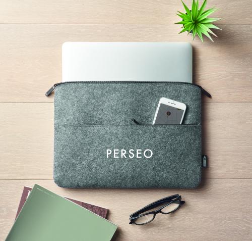 RPET felt 14 inch zippered laptop bag with zippered front pocket.