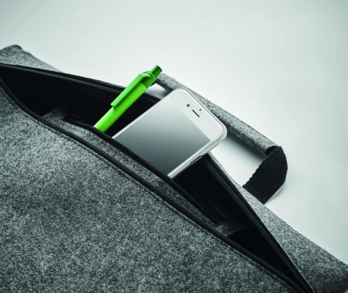 RPET felt 15 inch zippered laptop bag with zippered main compartment and inner pocket.
