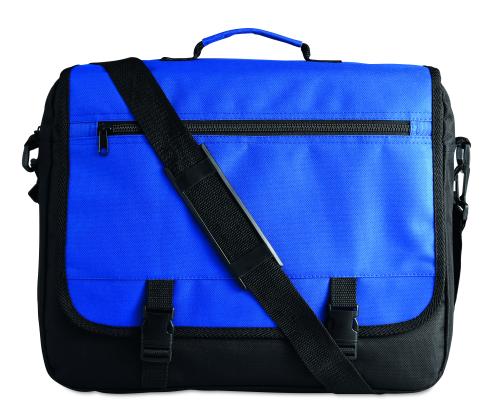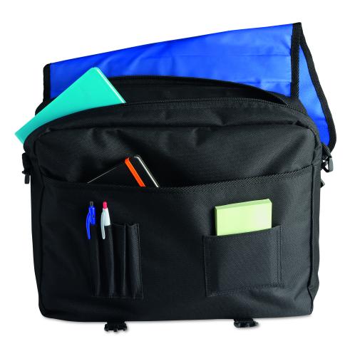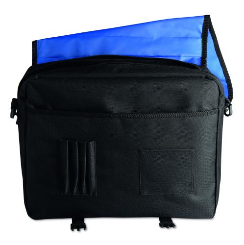 Document flap bag in 600D polyester with zipped main compartment and several pockets with an adjustable and detachable shoulder strap.