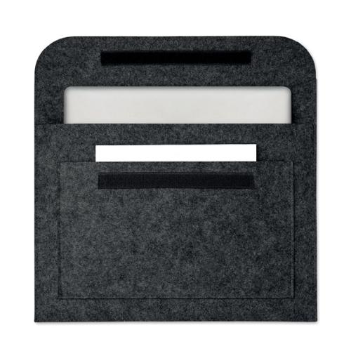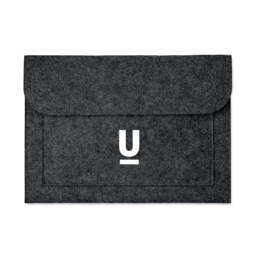 Documents bag or 15 inch laptop pouch in RPET felt, 2mm thick, with front pocket and hook and loop closing.